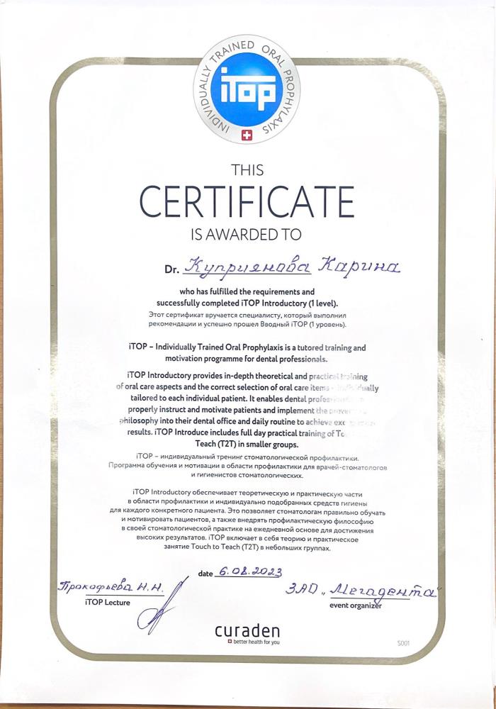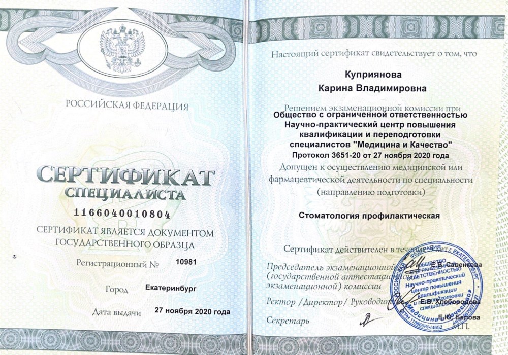 Повышение квалификации по дополнительной профессиональной программе «Современные аспекты профилактической стоматологии» -