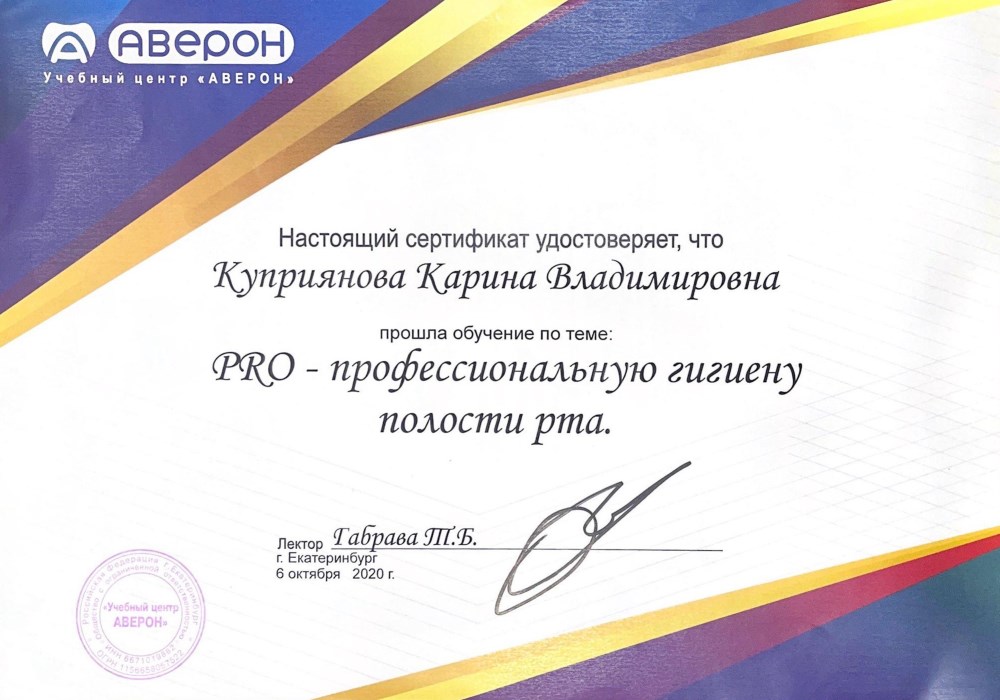 Обучение «PRO-профессиональную гигиену полости рта» - 2021 г.