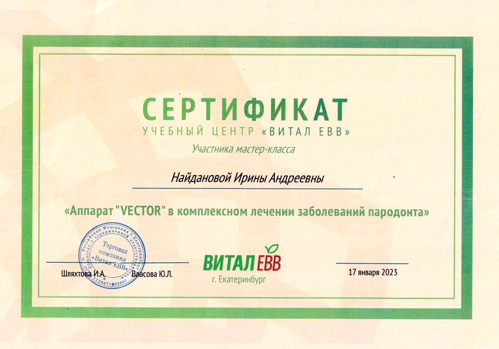 «Аппарат «VECTOR» в комплексном лечении заболеваний пародонта» мастер-класс ВиталЕВВ, г. Екатеринбург
