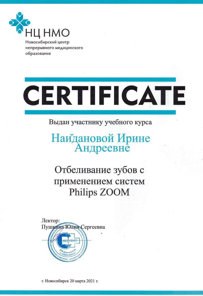 «Отбеливание зубов с применением систем PhillipsZOOM», учебный курс, г. Новосибирск - 2023 г.