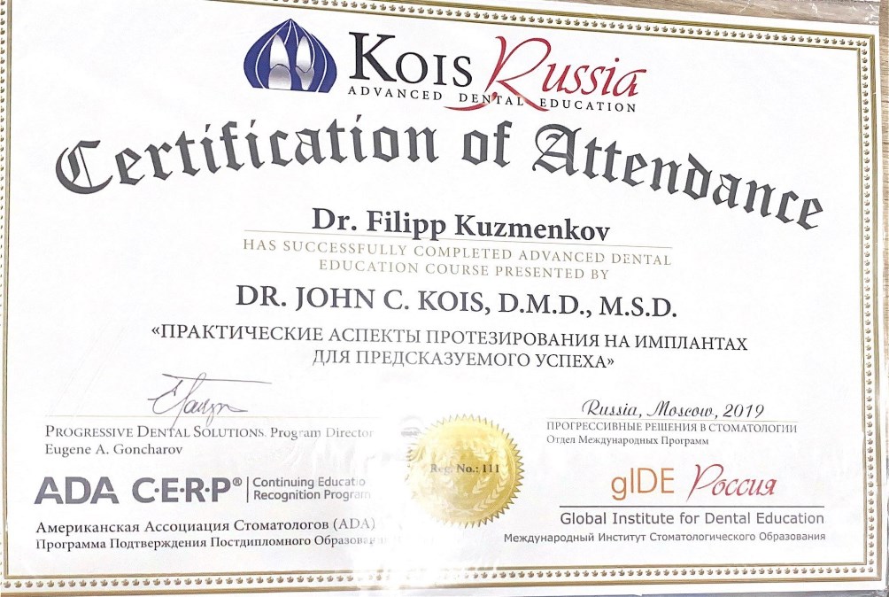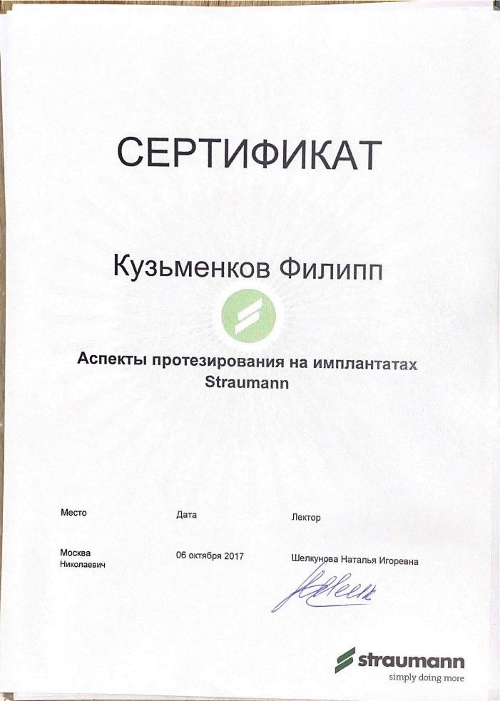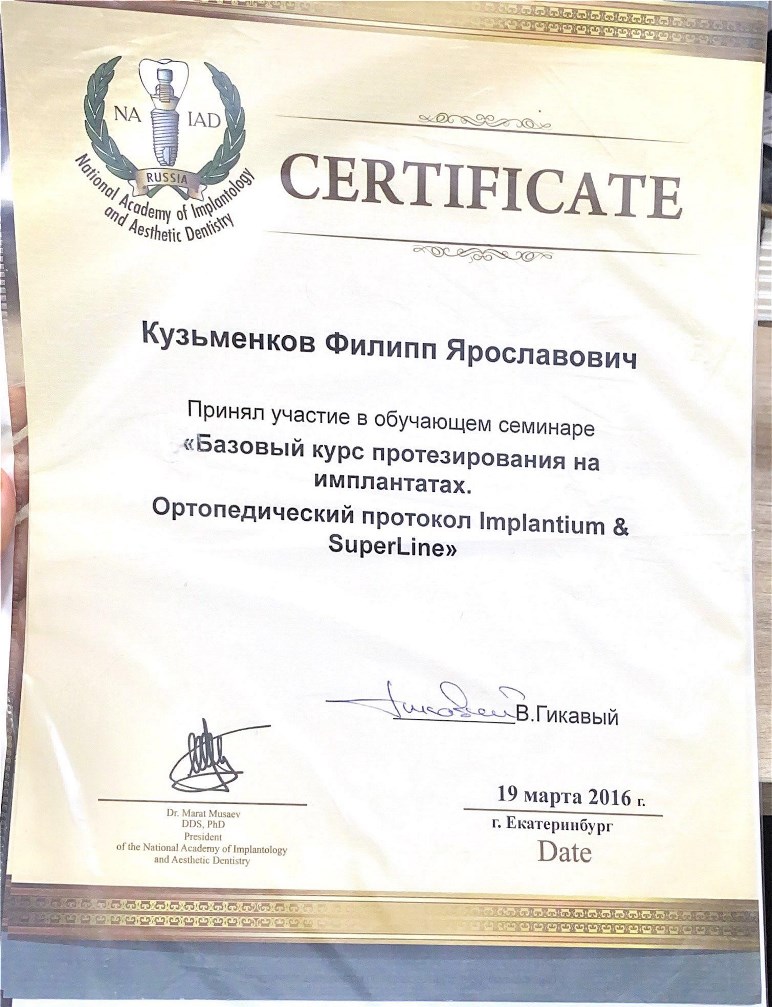 Действующий член Международной Ассоциации Имплантологов (ITI)