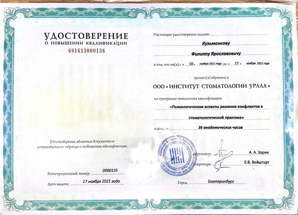 Обучение по программе повышения квалификации «Психологические аспекты решения конфликтов в стоматологической практике» -