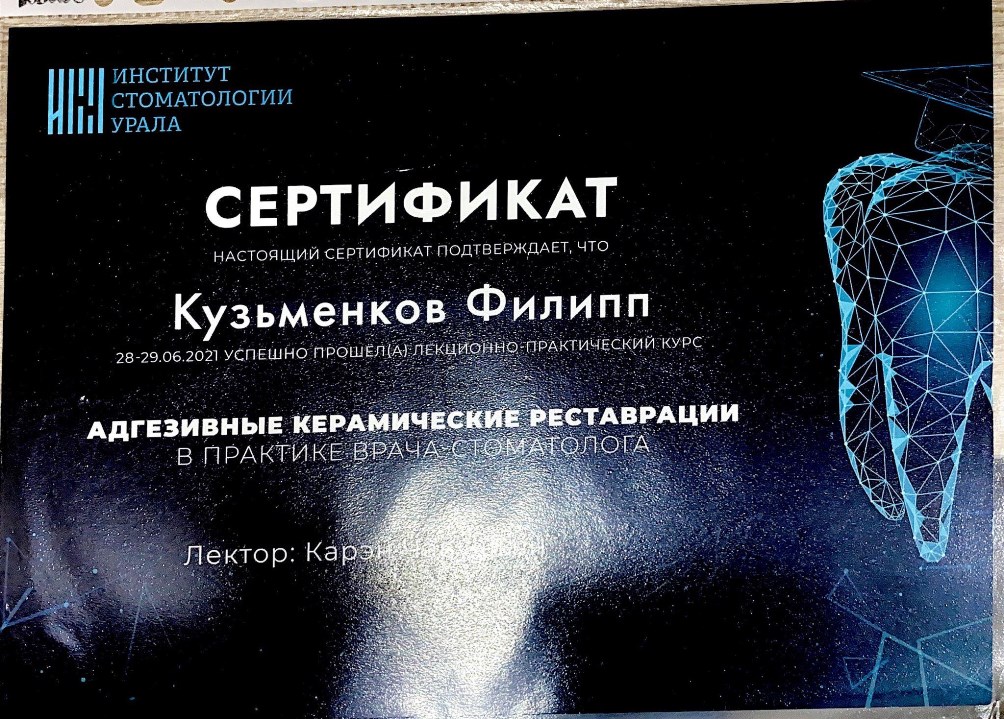 Обучение в ООО «Институт стоматологии Урала» по программе повышения квалификации «Применение лазерных технологий в современной стоматологической практике» -
