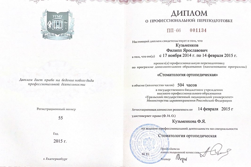 Профессиональная переподготовка по программе «Стоматология ортопедическая» -