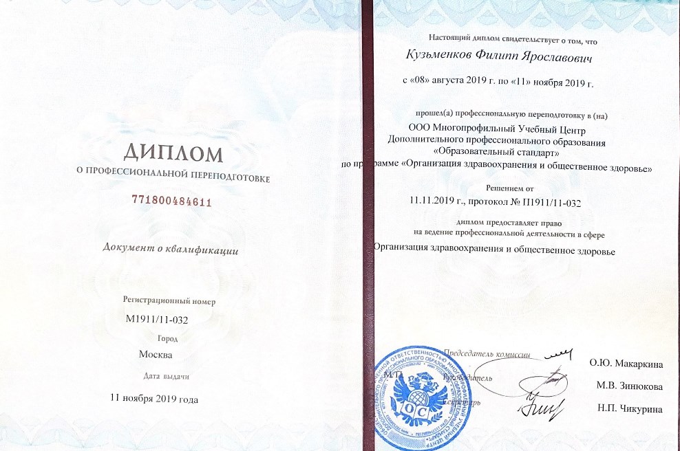 Профессиональная переподготовка по программе «Организация здравоохранения и общественное здоровье» -