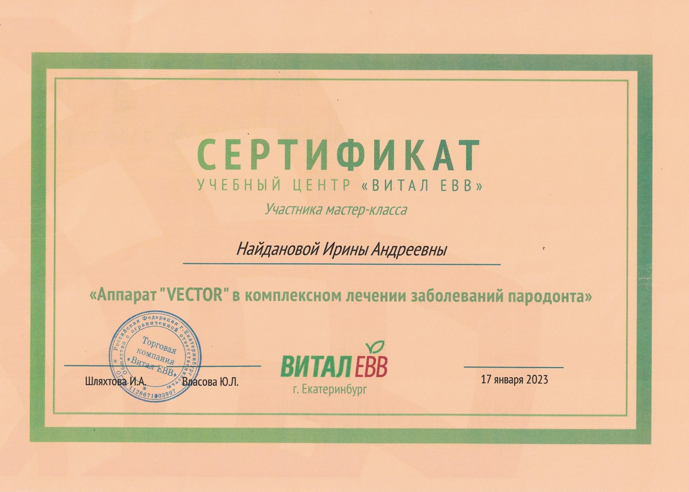 «Аппарат «VECTOR» в комплексном лечении заболеваний пародонта» мастер-класс ВиталЕВВ, г. Екатеринбург