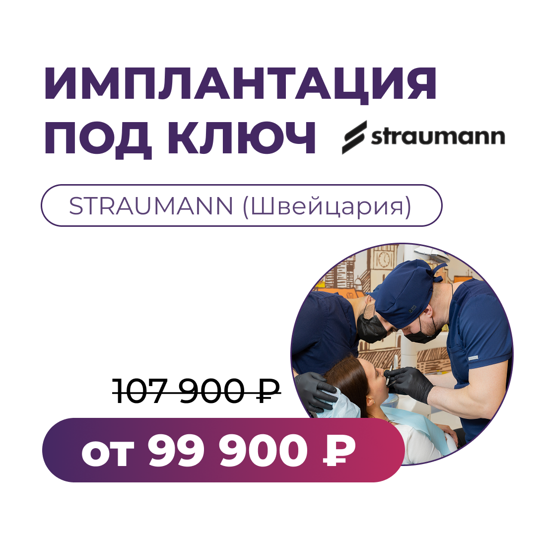 - Установка дентального импланта от мирового производителя Straumann Group;
