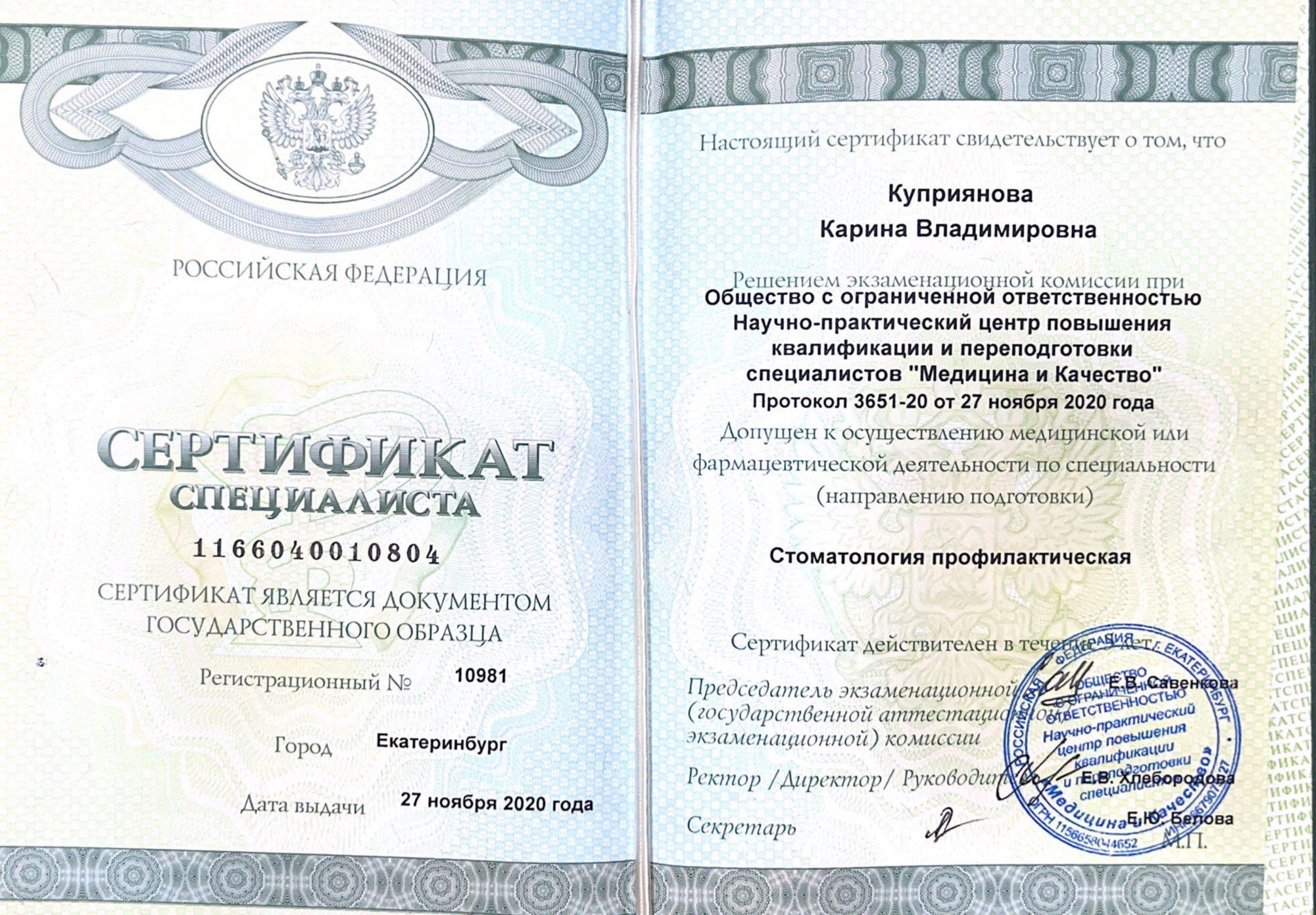 Повышение квалификации по дополнительной профессиональной программе «Современные аспекты профилактической стоматологии»