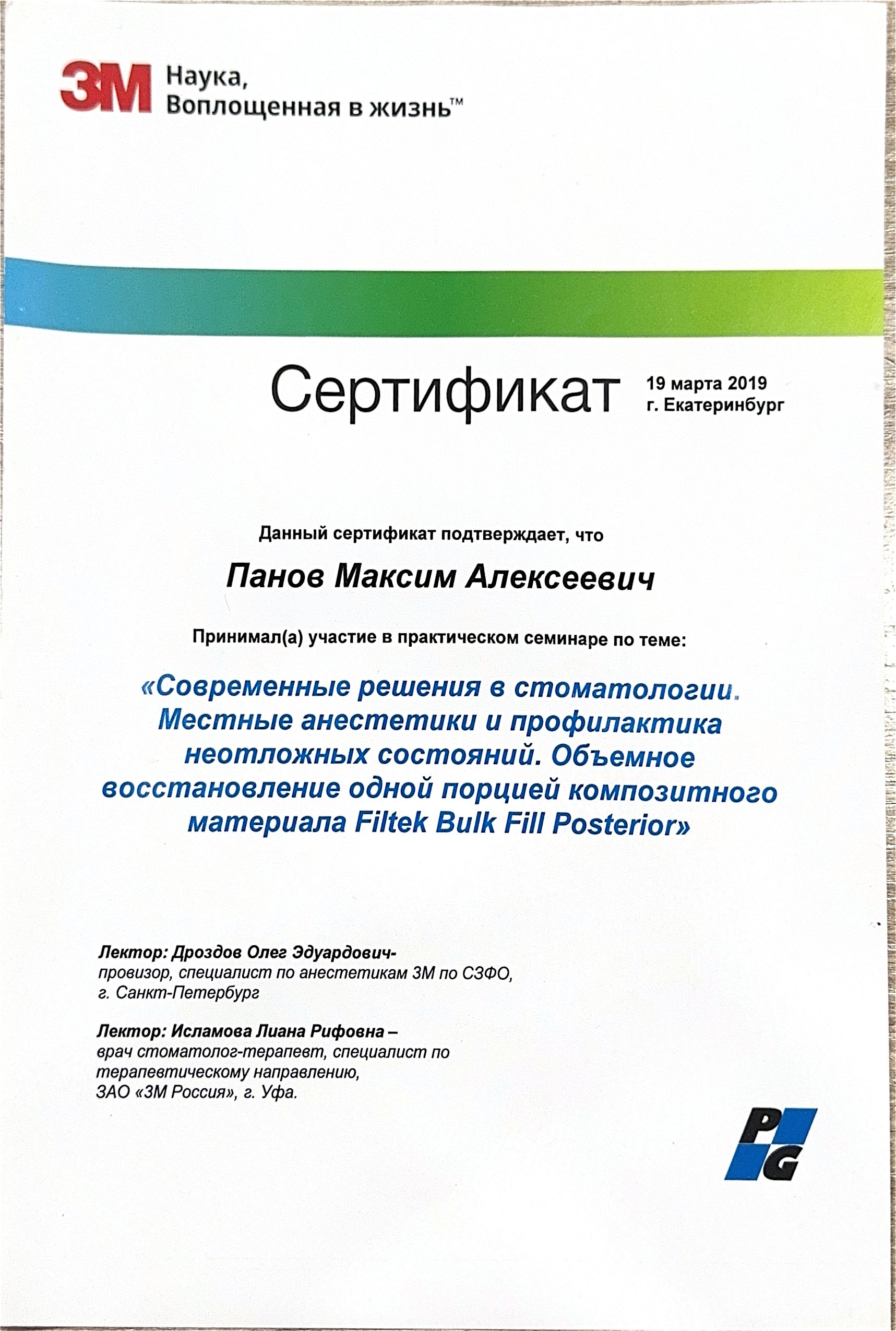 Практический семинар по теме: «Современные решения в стоматологии. Местные анестетики и профилактика неотложных состояний. Объемное восстановление одной порцией композитного материала FILTEKBulkFillPosterior»