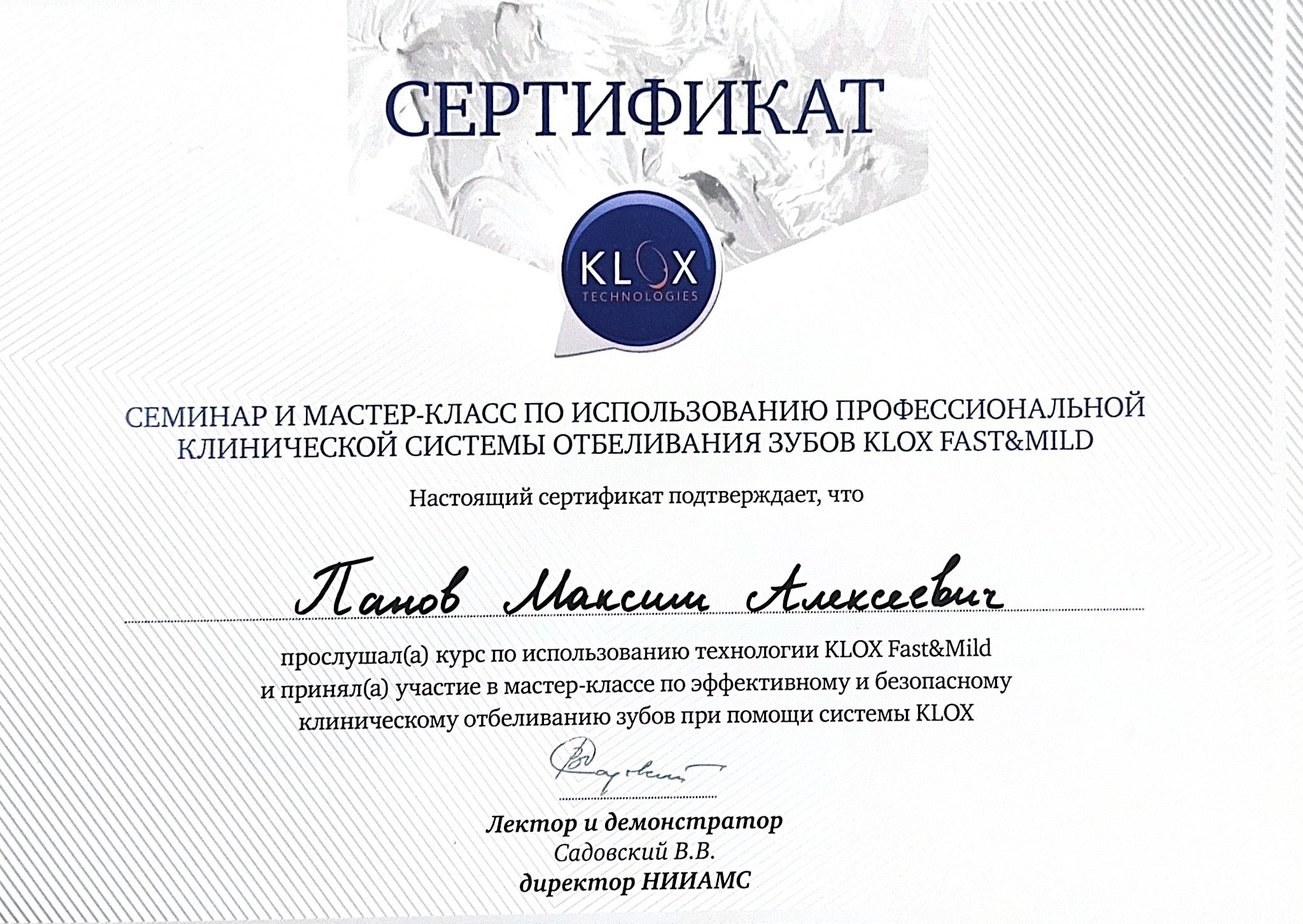 Семинар и мастер-класс по использованию профессиональной клинической системы отбеливания зубов KLOXFAST&MILD