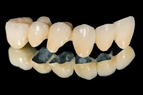 - Для протезирования передних групп зубов: имеют сокращенный объем металлического каркаса и керамическую внешнюю часть. Такая технология позволяет сохранить прочность и обеспечить достойный внешний вид.
